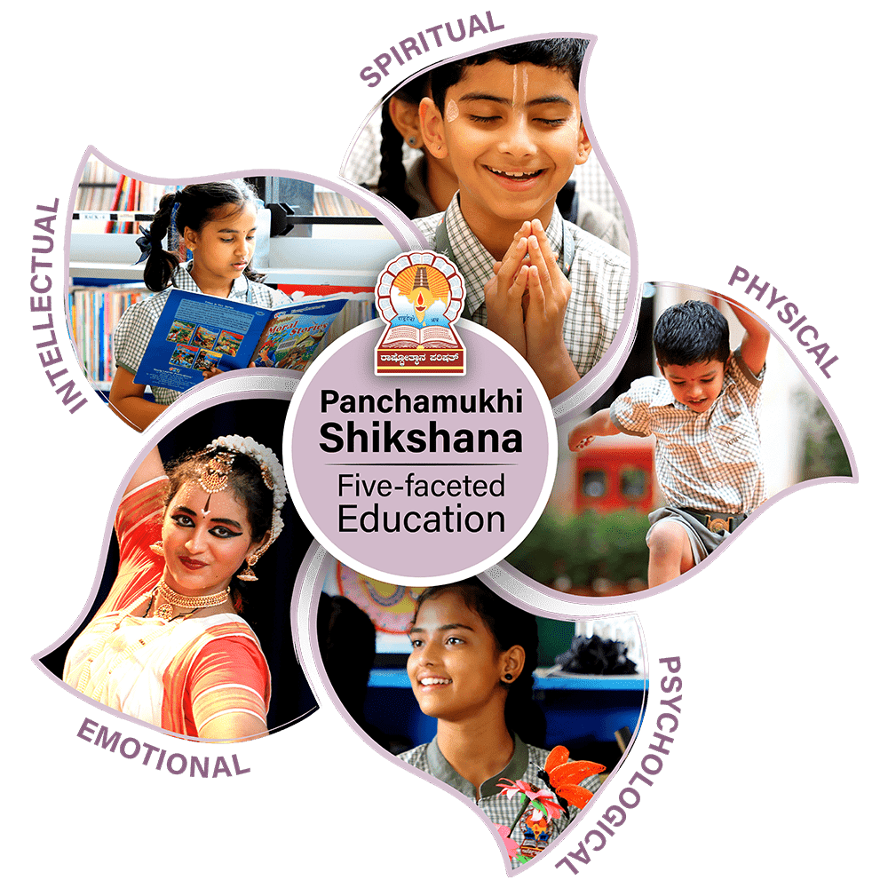 • PanchamukhiShikshana: Through our distinct PanchamukhiShikshana approach, we facilitate the holistic development of students across five essential domains: intellectual, emotional, psychological, physical, and spiritual facets of their personality.