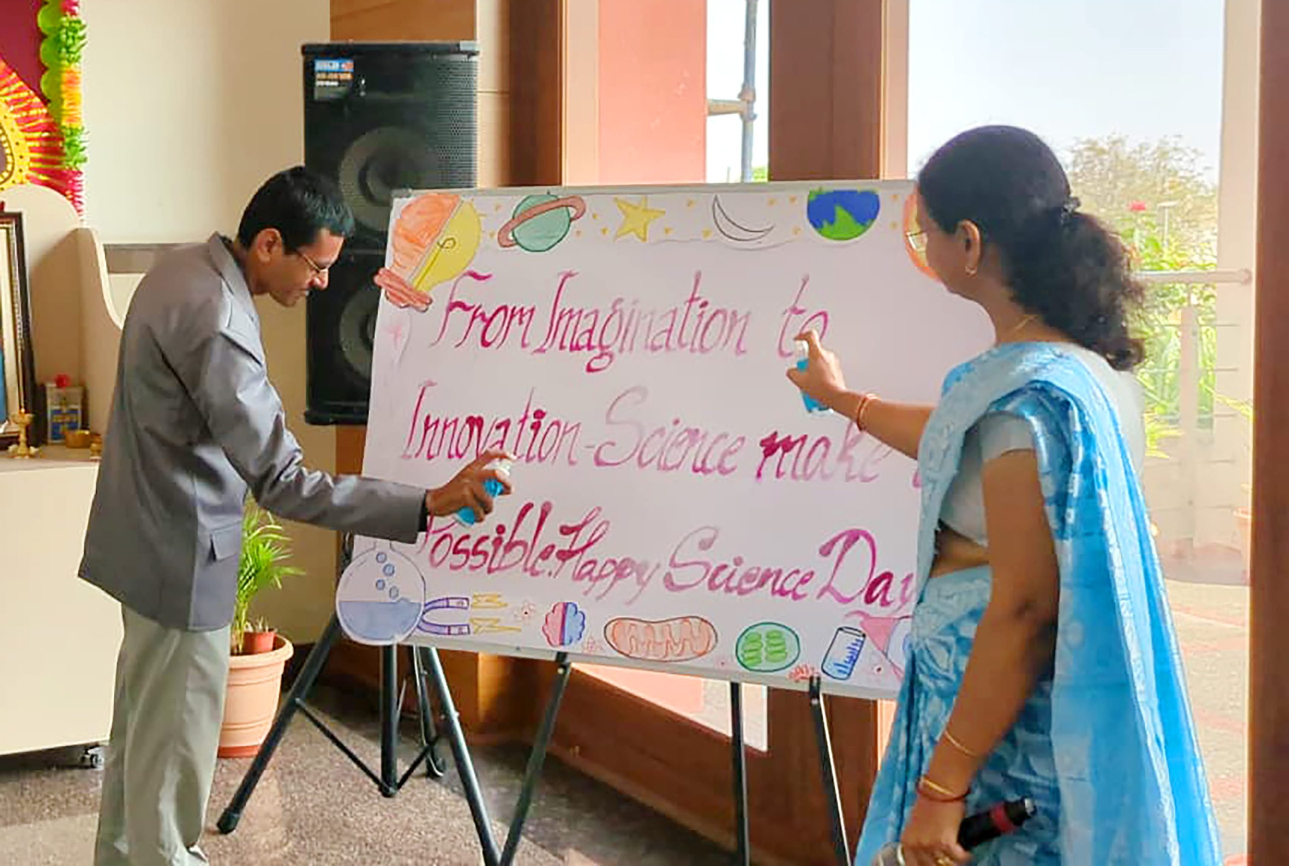 ಬಳ್ಳಾರಿ, ಫೆ. 26: ರಾಷ್ಟ್ರೋತ್ಥಾನ ವಿದ್ಯಾಕೇಂದ್ರವು – ಬಳ್ಳಾರಿಯಲ್ಲಿ ವಿಜ್ಞಾನ ದಿನವನ್ನು ಆಚರಿಸಲಾಯಿತು. ಮುಖ್ಯ ಅತಿಥಿಗಳಾಗಿ ಯುವವಿಜ್ಞಾನಿ ಶ್ರೀ ಹೇಮಂತ್ ಅವರು ಆಗಮಿಸಿದ್ದರು. ಶ್ರೀಮತಿ ಹರಿಪ್ರಿಯಾ ಅವರು ರಾಷ್ಟ್ರೀಯ ವಿಜ್ಞಾನ ದಿನವನ್ನು ಆಚರಿಸುವ ಮಹತ್ವವನ್ನು ಎತ್ತಿ ತೋರಿಸಿದರು. ವಿದ್ಯಾರ್ಥಿಗಳು ದಿನದ ಮಹತ್ವದ ಬಗ್ಗೆ ಮಾತನಾಡಿ ವಿಜ್ಞಾನವು ನಮ್ಮ ದೈನಂದಿನ ಜೀವನದಲ್ಲಿ ಹೇಗೆ ಪ್ರಮುಖ ಪಾತ್ರ ವಹಿಸುತ್ತದೆ ಮತ್ತು ನಾವೀನ್ಯತೆ ಮತ್ತು ಆವಿಷ್ಕಾರವನ್ನು ಪ್ರೇರೇಪಿಸುತ್ತದೆ ಎನ್ನುವುದನ್ನು ವಿವರಿಸಿದರು. ಮುಖ್ಯ ಅತಿಥಿಗಳಾದ ಶ್ರೀ ಹೇಮಂತ್ ಕುಮಾರ್ ಟಿ. ಜಿ. ಅವರು ವಿದ್ಯಾರ್ಥಿಗಳನ್ನು ಉದ್ದೇಶಿಸಿ ಸ್ಪೂರ್ತಿದಾಯಕ ಭಾಷಣ ಮಾಡಿ, ಯುವ ಮನಸ್ಸುಗಳು ಕುತೂಹಲದಿಂದ ಇರಲು ಮತ್ತು ವೀಕ್ಷಣೆ ಮತ್ತು ಪ್ರಯೋಗಗಳ ಮೂಲಕ ವಿಜ್ಞಾನದ ಅದ್ಭುತಗಳನ್ನು ಅನ್ವೇಷಿಸಲು ಪ್ರೋತ್ಸಾಹಿಸಿದರು. ಪ್ರಧಾನಾಚಾರ್ಯ ಶ್ರೀಮತಿ ಸರಸ್ವತಿ ಅವರು ವಿಜ್ಞಾನ ದಿನದ ವಿಷಯ ಮತ್ತು ವೈಜ್ಞಾನಿಕ ಚಿಂತನೆಯನ್ನು ಬೆಳೆಸುವ ಮಹತ್ವವನ್ನು ಒತ್ತಿ ಹೇಳಿದರು. ಗೋಕುಲಂ ವಿದ್ಯಾರ್ಥಿಗಳು ಜ್ಞಾನೇಂದ್ರಿಯಗಳ ವಿಷಯಾಧಾರಿತ ನೃತ್ಯವನ್ನು ಪ್ರದರ್ಶಿಸಿದರು 1 ಮತ್ತು 2ನೇ ತರಗತಿಯ ವಿದ್ಯಾರ್ಥಿಗಳು ಪ್ರದರ್ಶಿಸಿದ ಫ್ಯಾನ್ಸಿ ಡ್ರೆಸ್ ನಲ್ಲಿ ರಕ್ತ, ವಿಜ್ಞಾನಿಗಳು, ವಿಂಡಮಿಲ್ ಗಳು, ಆಂತರಿಕ ಅಂಗಗಳು, ಝಂಕ್ ಮತ್ತು ಆರೋಗ್ಯಕರ ಆಹಾರ, ಹಲ್ಲು ಮತ್ತು ಸಂಚಾರ ಸಂಕೇತಗಳುನ್ನು ಚಿತ್ರಿಸುವ, ಆರೋಗ್ಯ ಪರಿಸರ ಮತ್ತು ವೈಜ್ಞಾನಿಕ ಪರಿಕಲ್ಪನೆಗಳ ಫ್ಯಾನ್ಸಿ ಡ್ರೆಸ್ ಪ್ರದರ್ಶನ ಮಾಡಿದರು. 3ನೇ ತರಗತಿಯ ವಿದ್ಯಾರ್ಥಿಗಳು ವಿಜ್ಞಾನ ಗೀತೆ ನೃತ್ಯವನ್ನು ಪ್ರದರ್ಶಿಸಿದರು. ಮುಖ್ಯ ಅತಿಥಿಗಳು ಮತ್ತು ಪ್ರಧಾನಾಚಾರ್ಯರು “ಇನ್ವಿಸಿಬಲ್ ಇಂಕ್ ಮ್ಯಾಜಿಕ್” ಪ್ರದರ್ಶನದ ಮೂಲಕ ಸೃಜನೋತ್ಸವ ಉದ್ಘಾಟಿಸಿದರು.